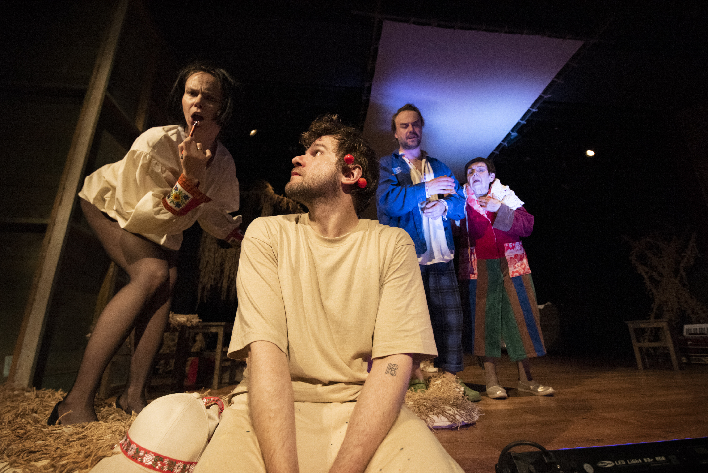 Twórcy spektaklu sięgają po poetykę groteski i czarnego humoru nie po to, by wyśmiewać, lecz by oswoić – pęknięcia w rzeczywistości, rozpadające się wspólnoty. To nie krytyka, ale uważne przyglądanie się ludziom, którzy próbują poskładać siebie na nowo, używając do tego śmiechu, absurdu, czasem niedorzeczności. I próba odpowiedzi na pytanie, jak z tych wszystkich pęknięć, resztek i duchów zbudować coś nowego? Jak uwolnić się od przeszłości i pozwolić jej godnie odejść? Jak szukać wspólnoty w wielopokoleniowych domach, w których każde pokolenie żyje w innym świecie? To pytania, które stawia sobie zespół realizatorski.